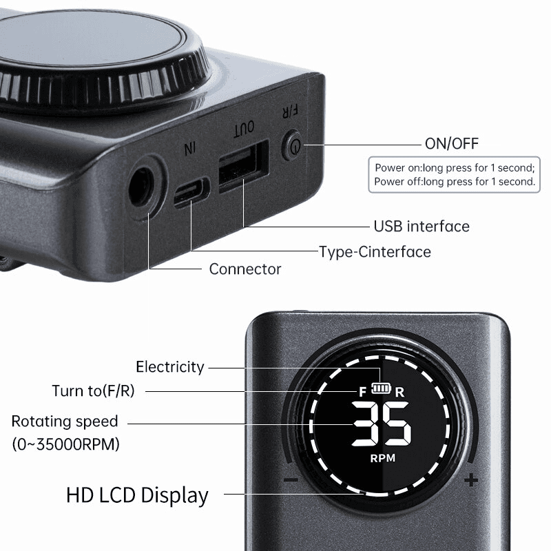5. Adjustable rotating speed 0‑35000rpm, rotate the knob to adjust the speed, meet your different needs.