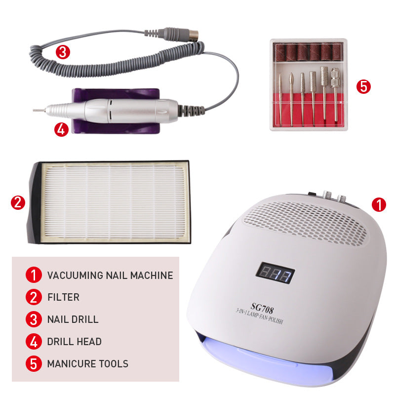 3 in 1 Nail Dust Vacuum Cleaner Nail Drill 140W UV LED Nail Lamp Full-featured Manicure Machine