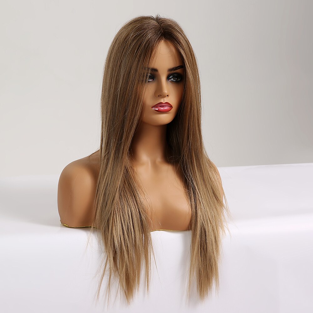 Feature : Long Silk Straight Synthetic Lace Wig,Ombre Brown Golden Lace Wig,Lace Wig,Natural Hairline