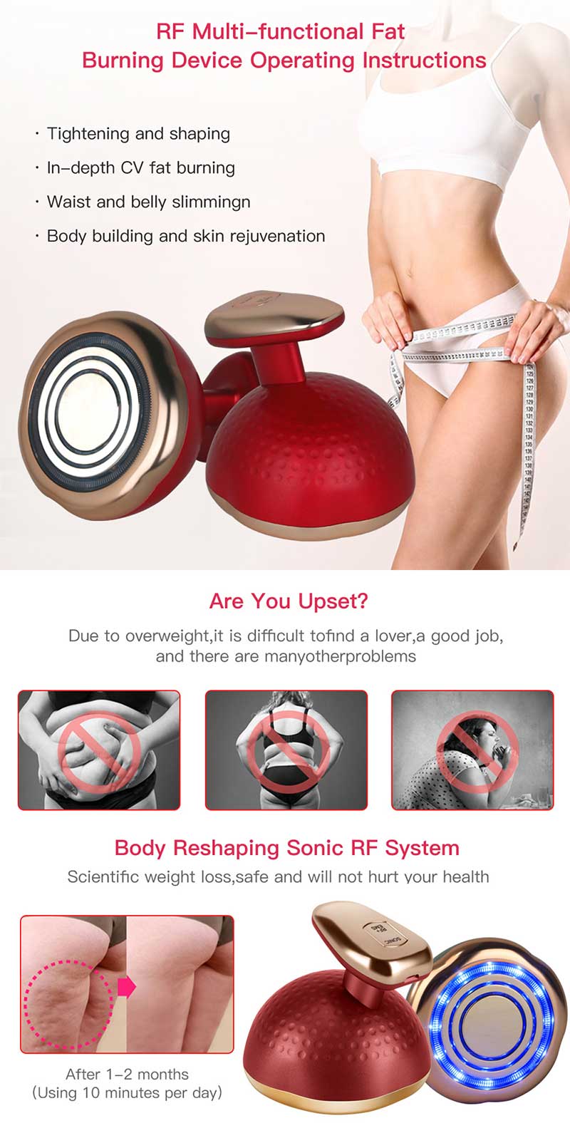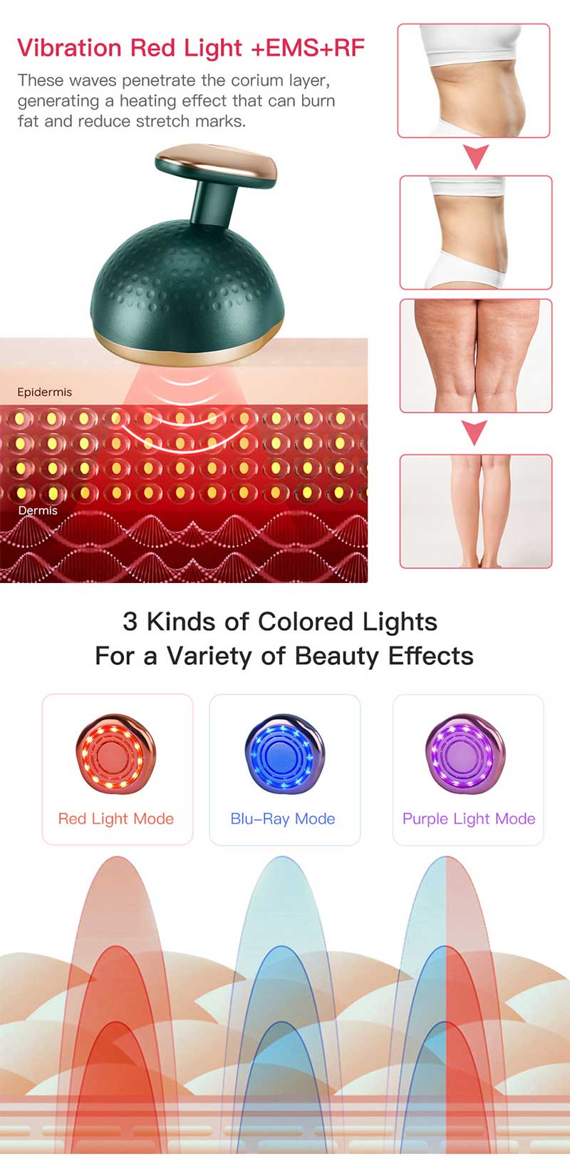 【Shaping mode: Vibration +EMS+ Ultrasound wave + Purple light + RF】