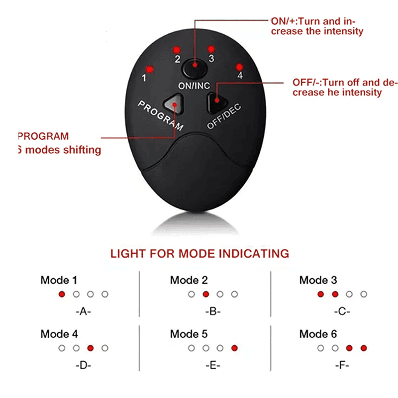 One button control to start professional training, 2 select modes, 15 intensity levels, 25 minutes of automatic operation as a session and quiet, no noise