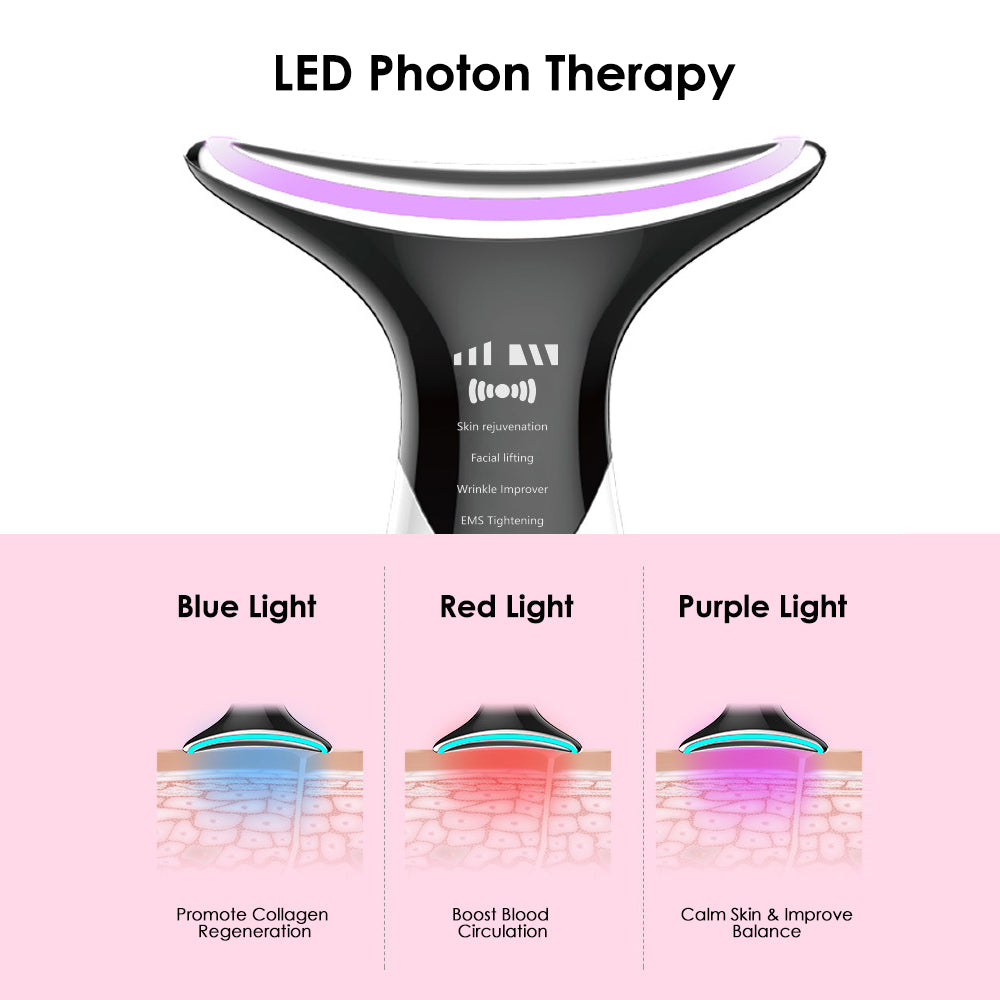 EMS Microcurrent Color Light Warm Therapy Neck Wrinkle Removal Vibration Massager Face Lifting Beauty Device