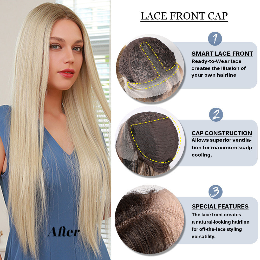 Gradient Gold Front Lace Wigs Long Straight Brown Roots Daily High Density Wig