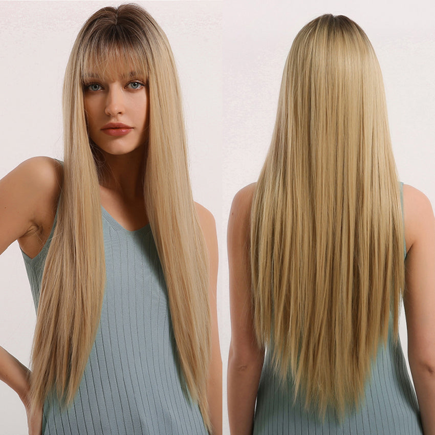 High Temperature Synthetic Ombre Blonde Wig Long Silky Straight Cosplay Wigs with Bangs