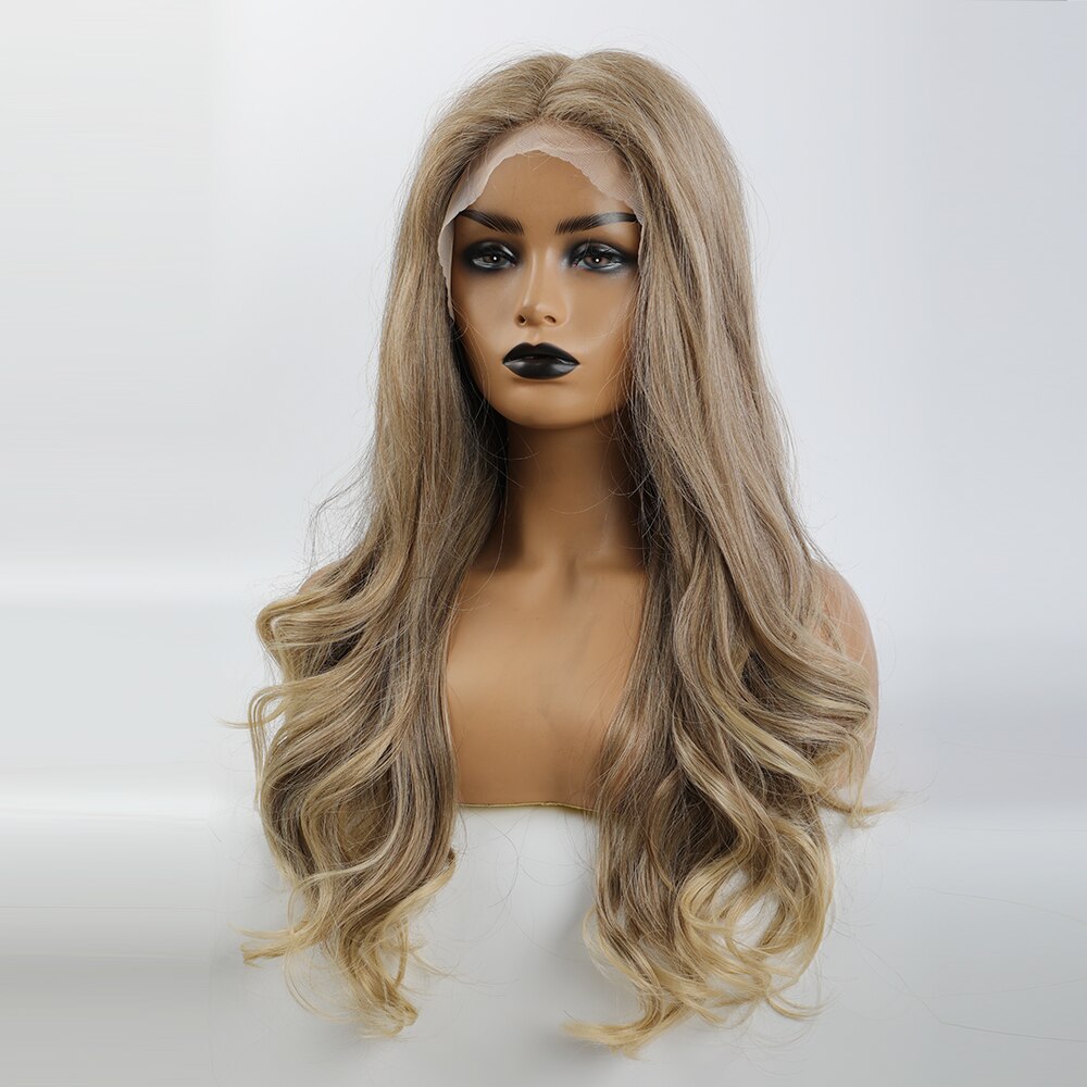 Feature : Long Water Wave Synthetic Lace Wig,Platinum Blonde,Lace Wig,Natural Hairline