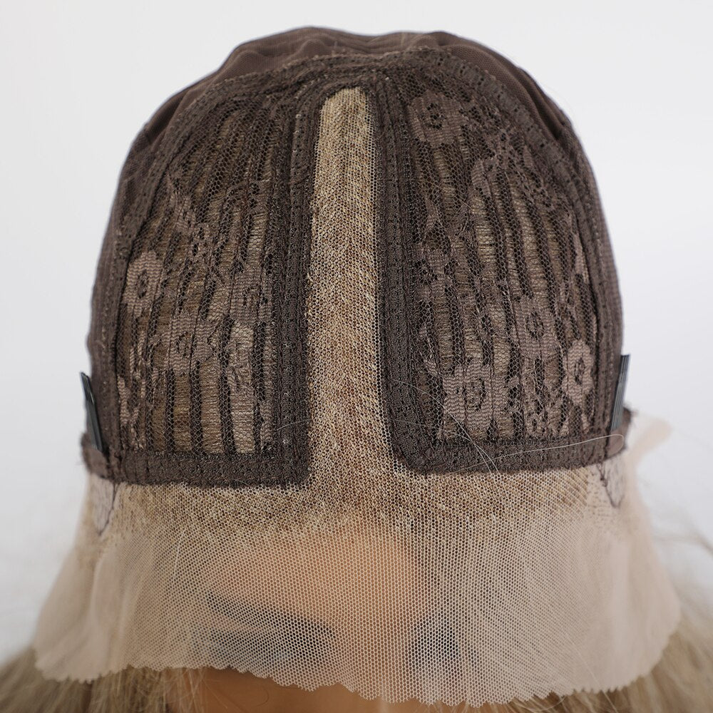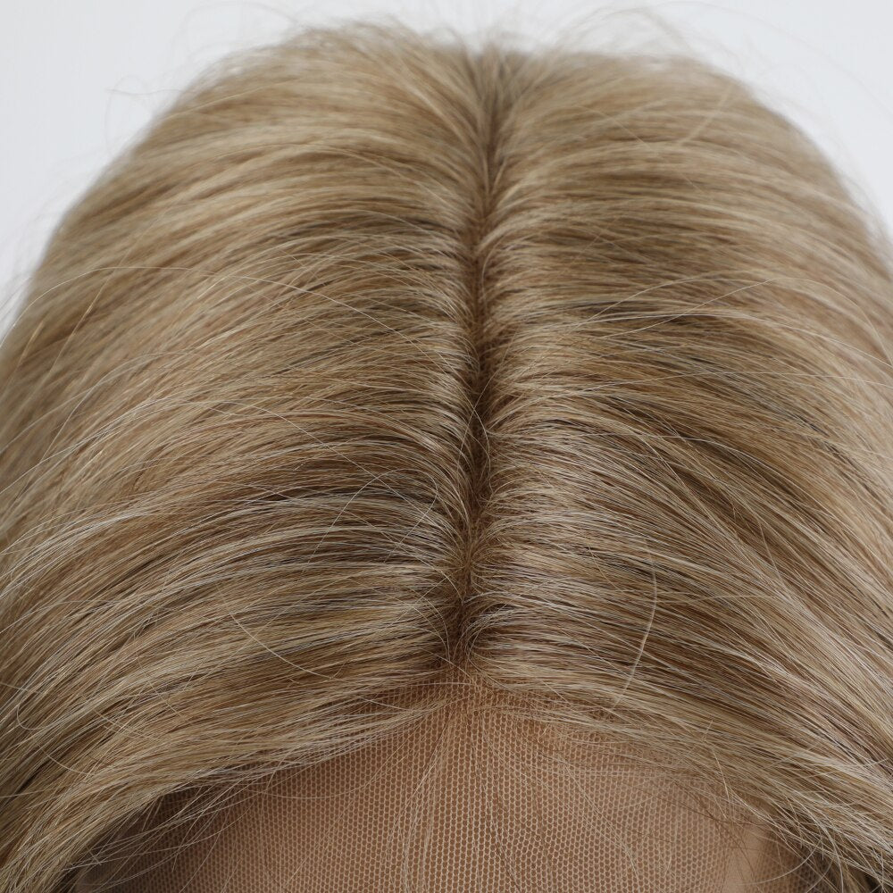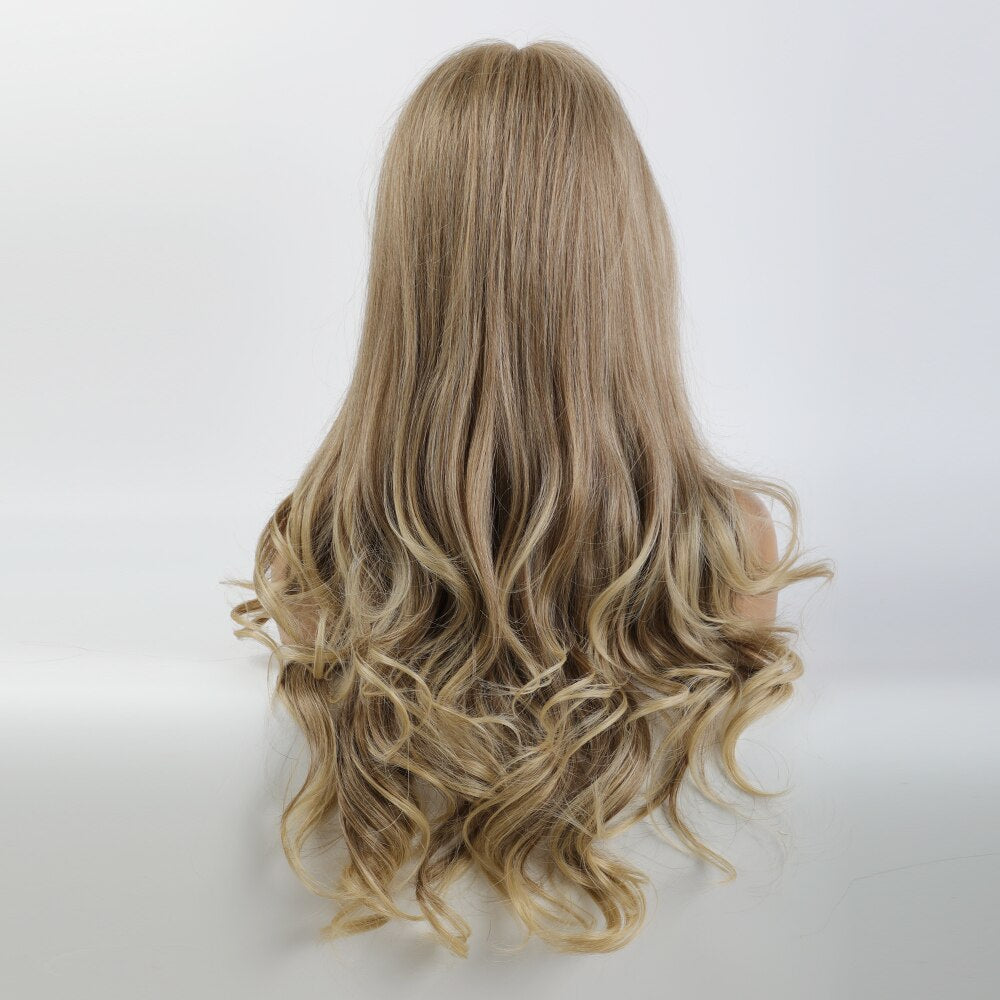 Light brown front lace wig natural Middle Part Long Wavy hand woven lace wig