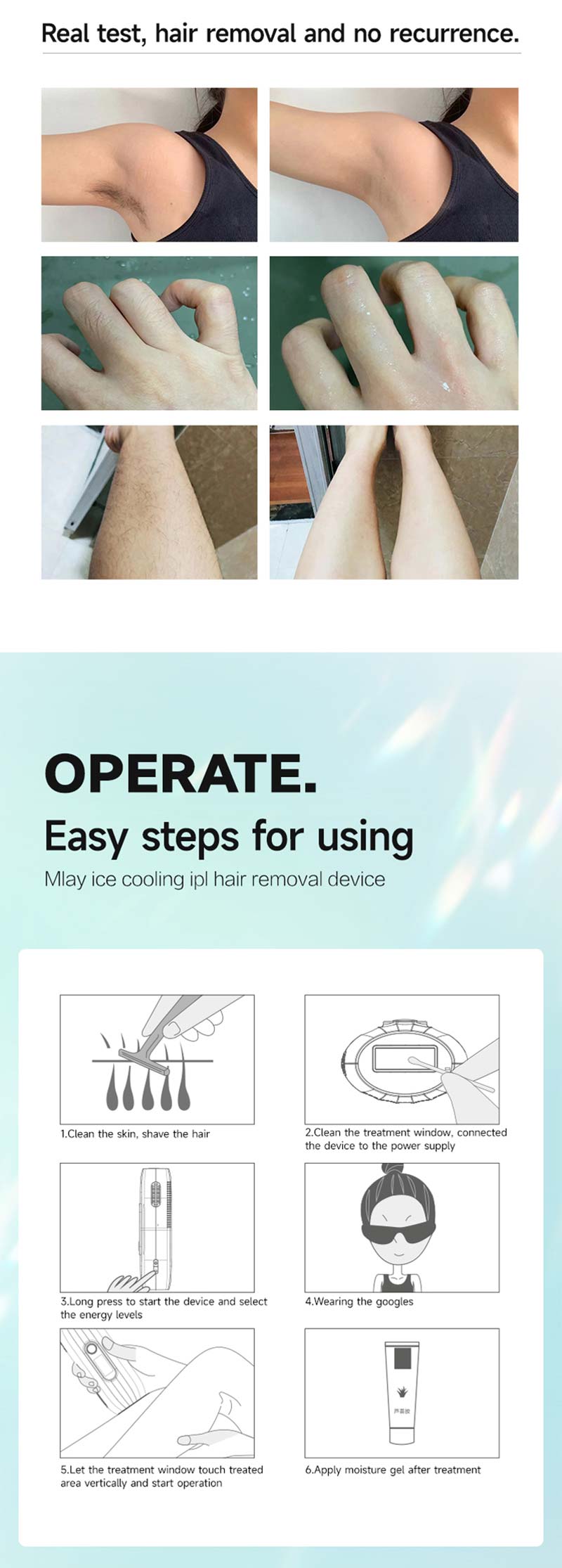 6. Very convenient, no need to go out to the beauty salon. Hair removal can be done by yourself at home. It is safer and needs to wear goggles when using it.