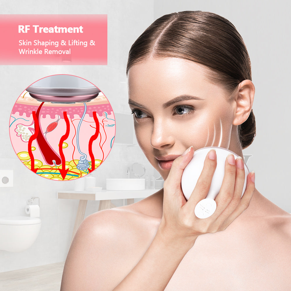 2.[RF Shaping Treatment]: Powerful RF radio waves can bring soothing heating effect on the dermal layer of the skin to reduce cellulite and tighten the skin, painless and efficient.