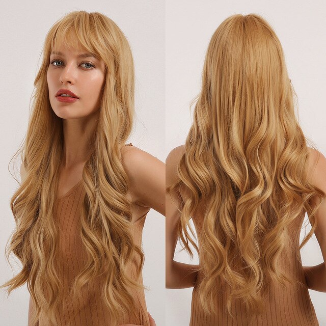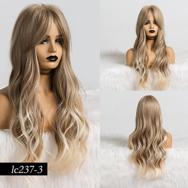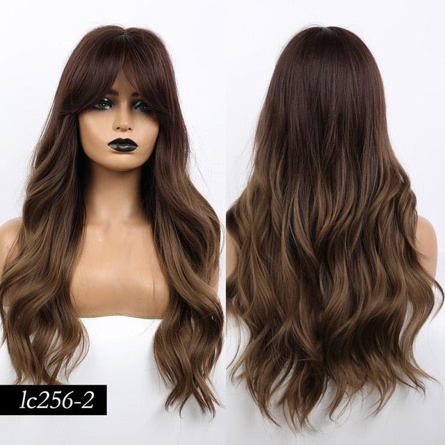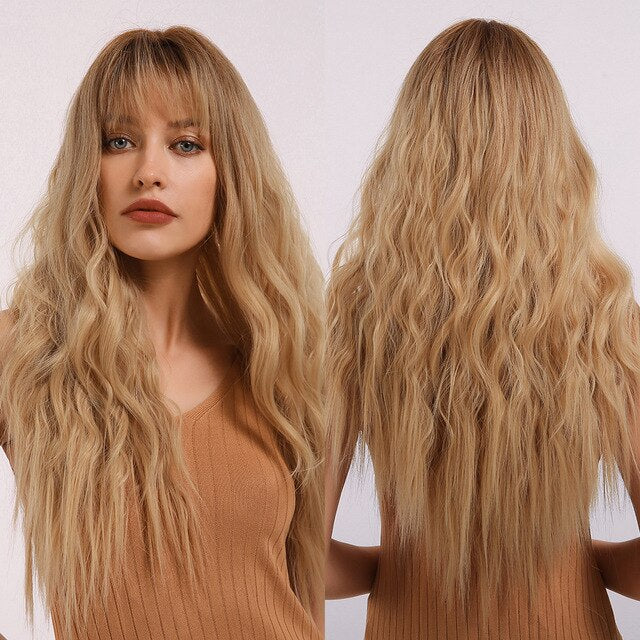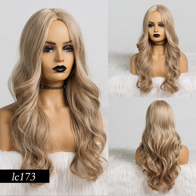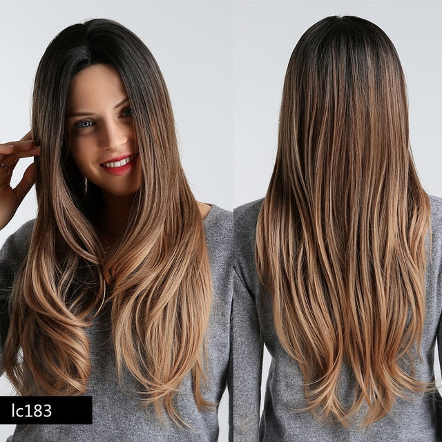 Synthetic Wigs Dark Root Light Brown Ombre Grey Long Wavy Hair Wigs Center Part
